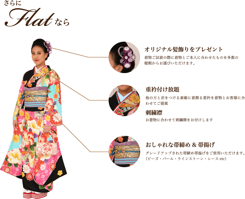 そんな皆さんに成人式を心から楽しんでいただきたくFlatの振袖プランを作りました。